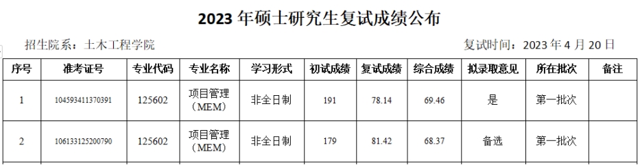 根据教育部及陕西省教育考试院相关文件精神和要求,现将2023年硕士研究生复试成绩(调剂第四批—项目管理(MEM))予以公布。如有异议,可通过以下方式反映。