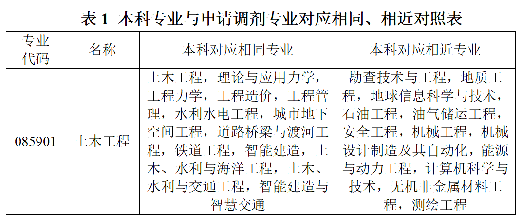 申请调剂土木工程的考生,公司将根据考生本科专业与申请调剂专业对应相同或相近的原则(表1),按照优先级顺序遴选调剂复试考生,同一优先级内的考生按照初试总分由高到低遴选进入复试。